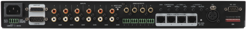 There are also five control inputs: Remote zone control on RJ45 connector for zone 1, 2, 3, 4 and RS232